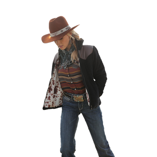 • Cowhide print lining.