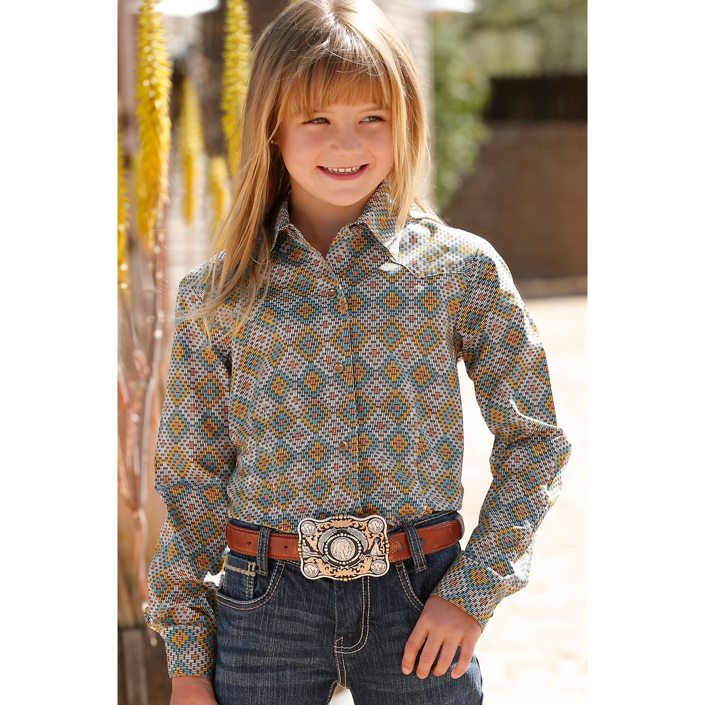Cruel Girl® Girl's Multicolor Geometric Snap Down Shirt CTW3220033