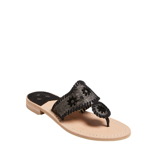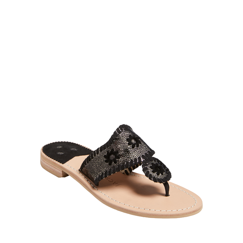 Jack Rogers Ladies Crackled Metallic Gunmetal Flat Sandals 142211JK02