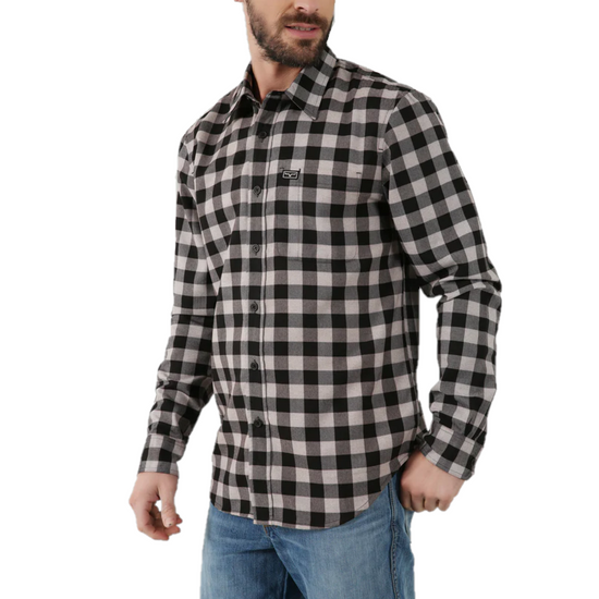 • Grey, white, and black plaid print