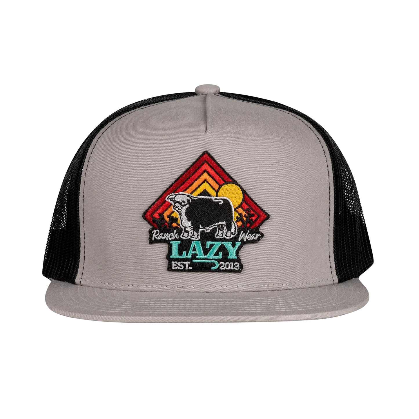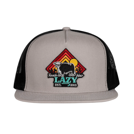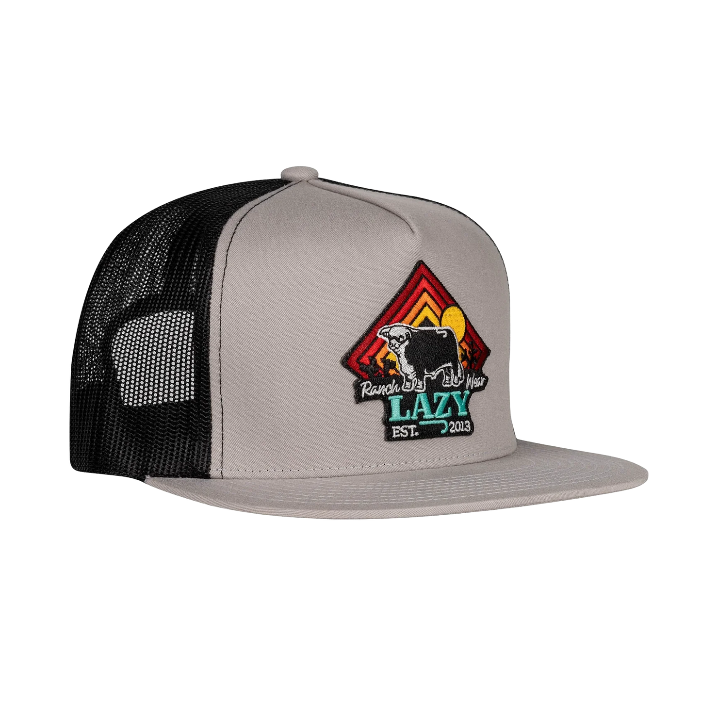 Lazy J Ranch Wear Cactus Sunrise Silver Grey & Black Trucker Cap SILBLK4RISE