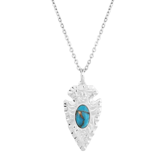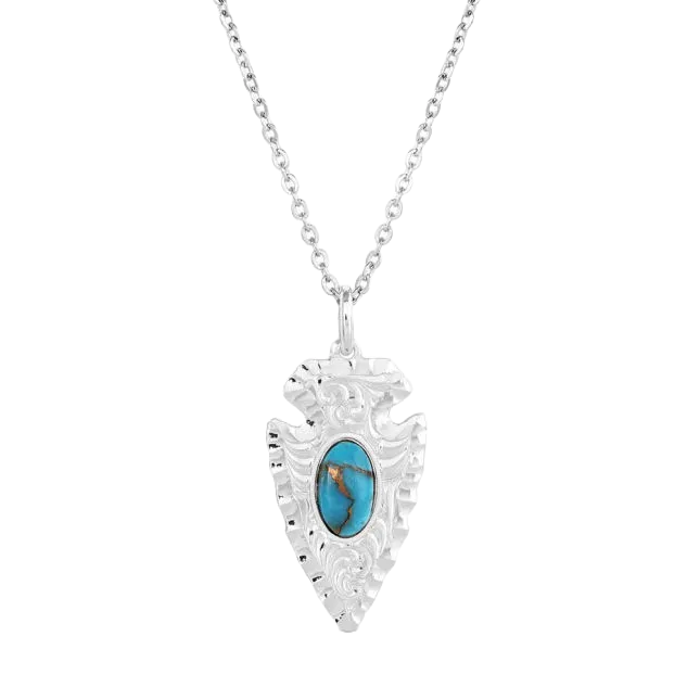 Montana Silversmiths Ladies Chiseled Arrowhead Silver Turquoise Necklace NC5393