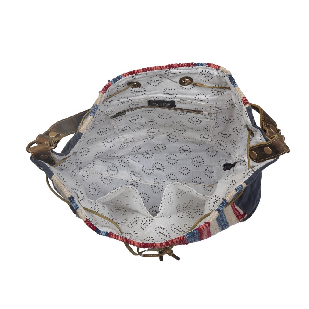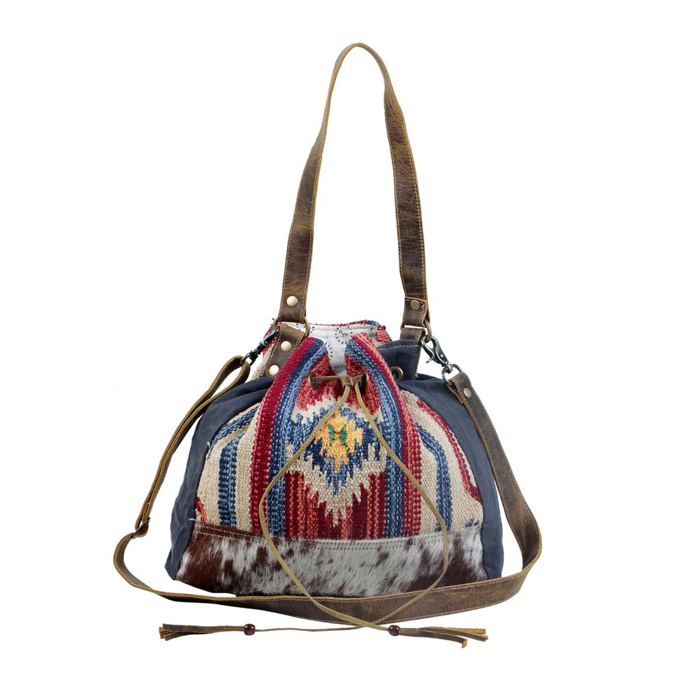 Myra Bag Blue Bucket Cotton Rug & Hair-On Shoulder Purse S-3062