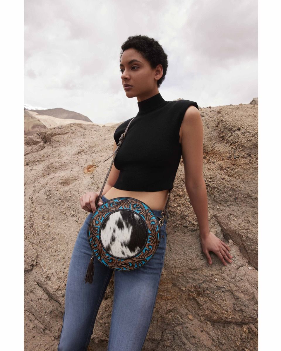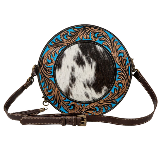 Myra Bag Ladies Night-Gaze Hand Tooled Round Leather Bag S-8142