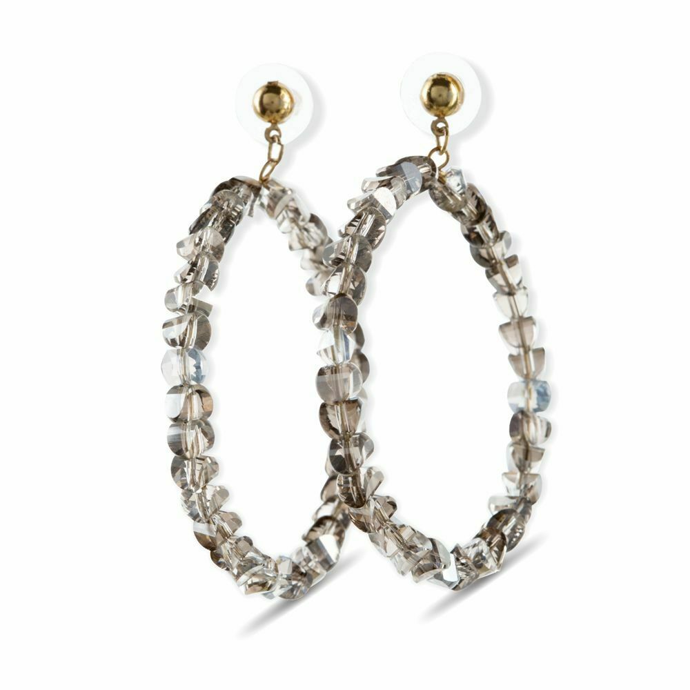 • Grey & metallic hoop earrings.