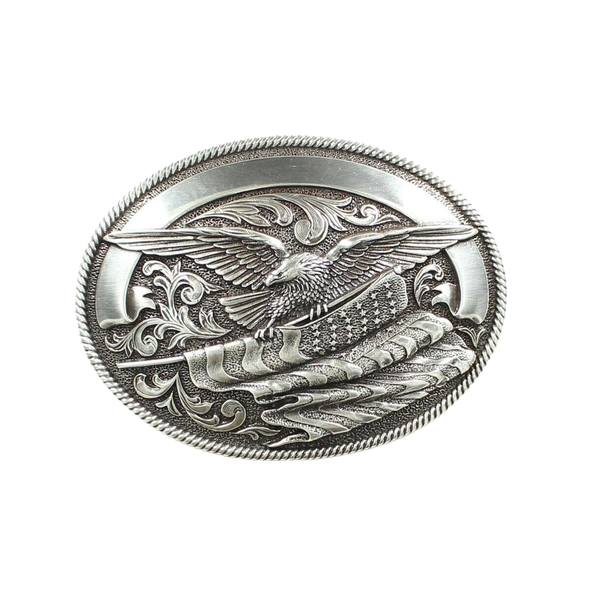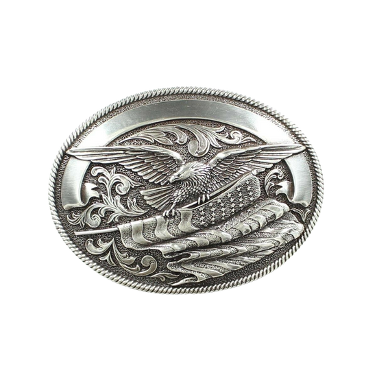 Nocona Mens Silver Eagle With American Flag Belt Buckle 37034