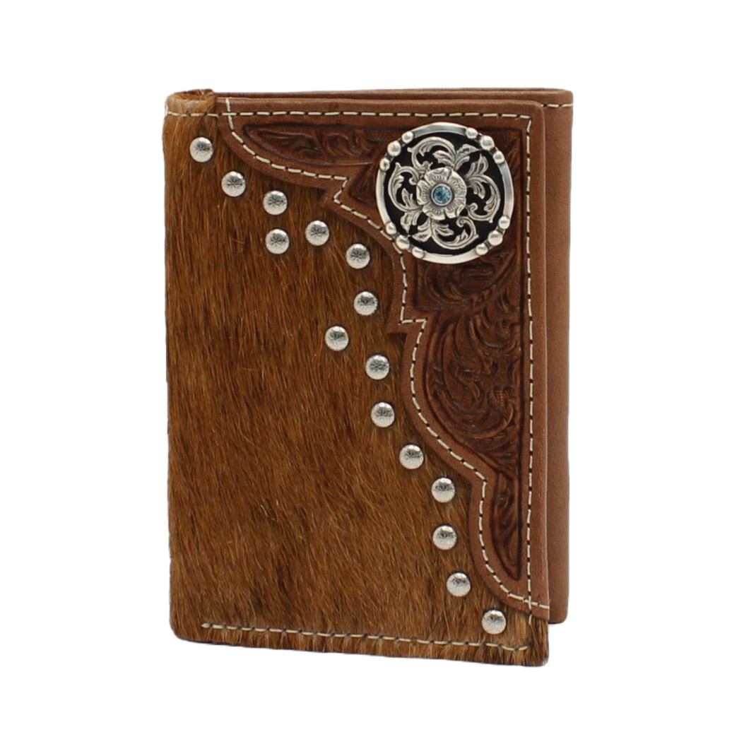 Nocona Men's Tri-fold Leather Calf Hair Concho Brown Wallet N500019002