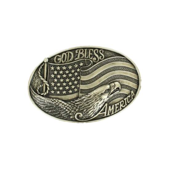 Nocona Oval God Bless America Silver Belt Buckle 37016