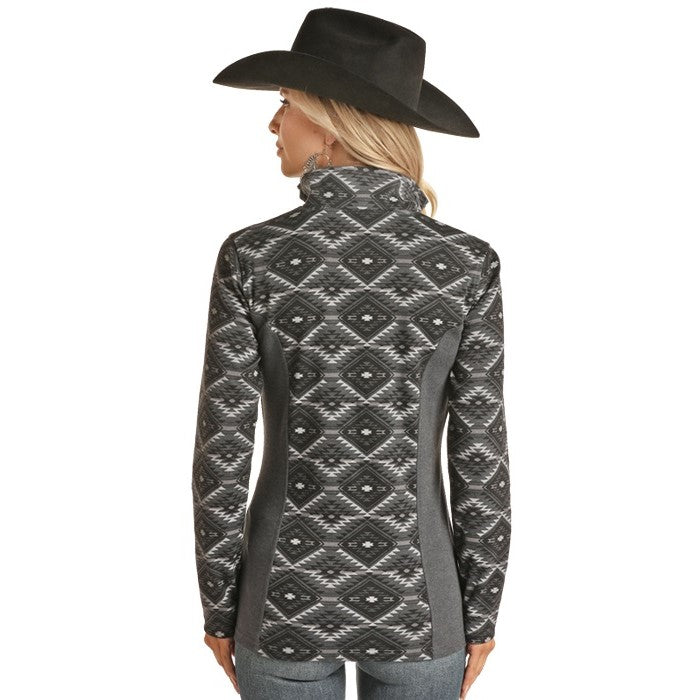 Powder River Ladies Aztec Knit Black Henley Pullover PRWO91RZXR-01