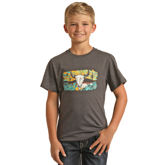 Rock & Roll Denim Kid's Cow Skull Charcoal T-Shirt RRBT21R062-02