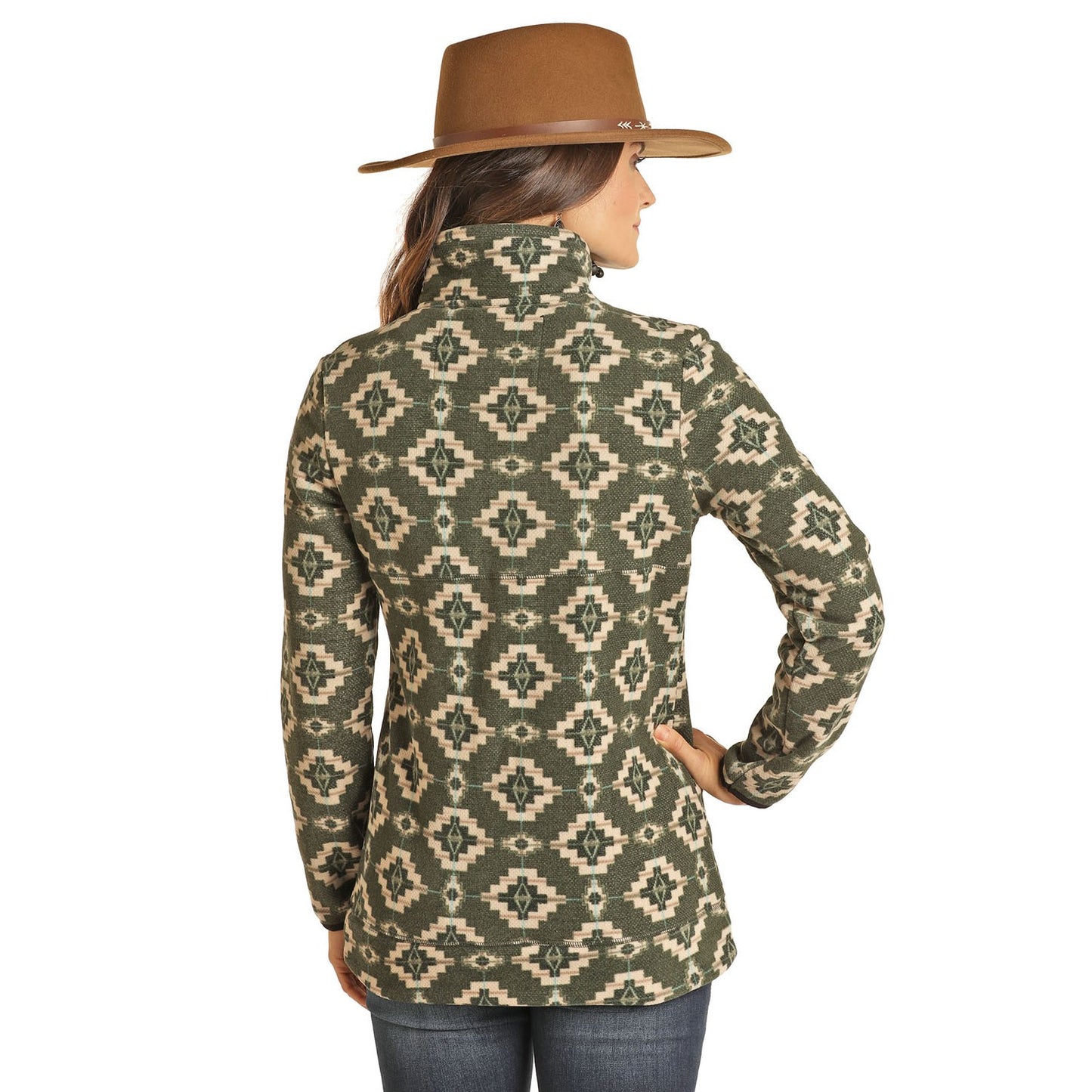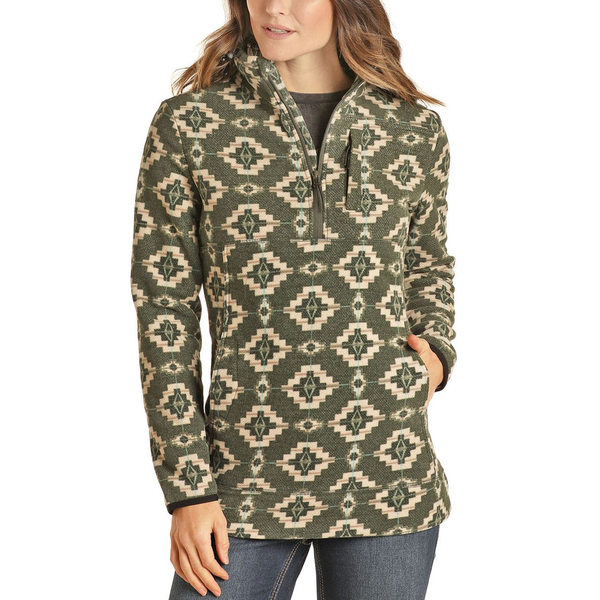 Powder River Outfitters Ladies 1/4 Zip Olive Aztec Pullover 51-1041-31