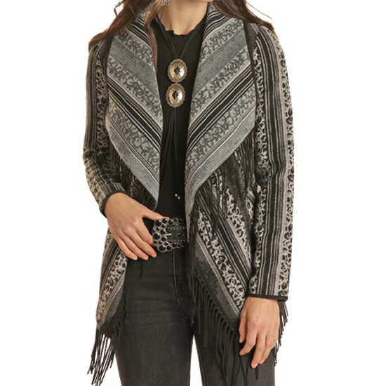 Powder River Outfitters Ladies Swing Wool Fringe Black Coat DW92C01499