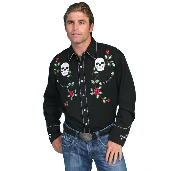 Scully Men's Black Skull Rose Embroidery Shirts P-771-BLK