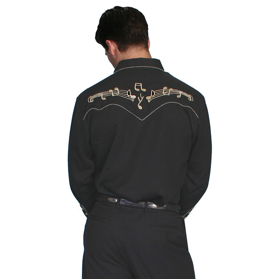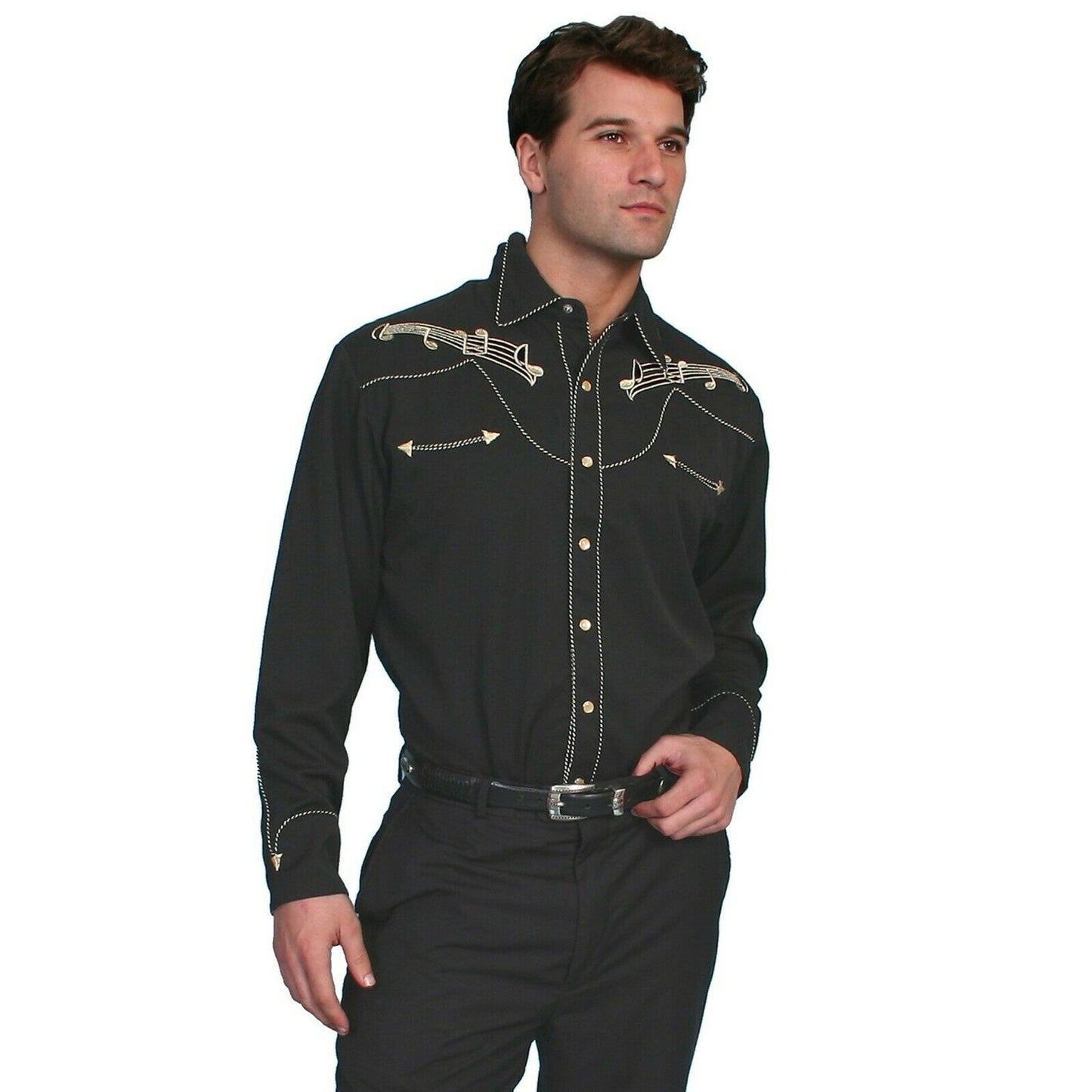 Scully Men's Gold Embroidery Notes Shirts P-627-BLK