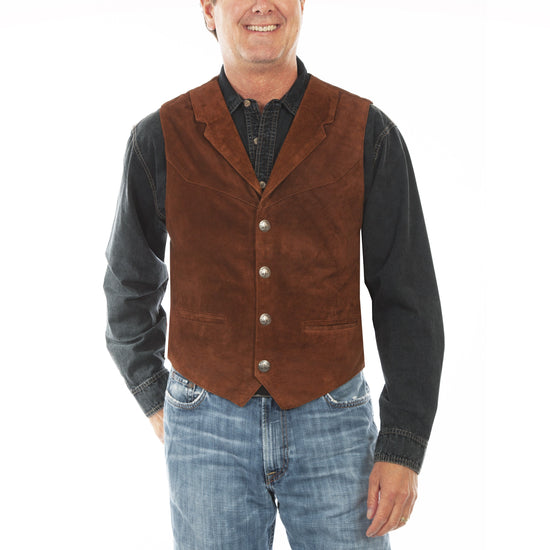Scully Men's Lambskin Lapel Café Brown Snap Western Vest 509-426
