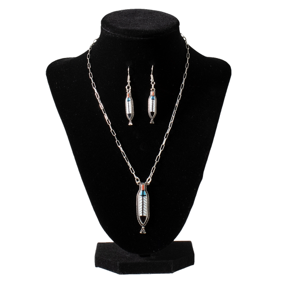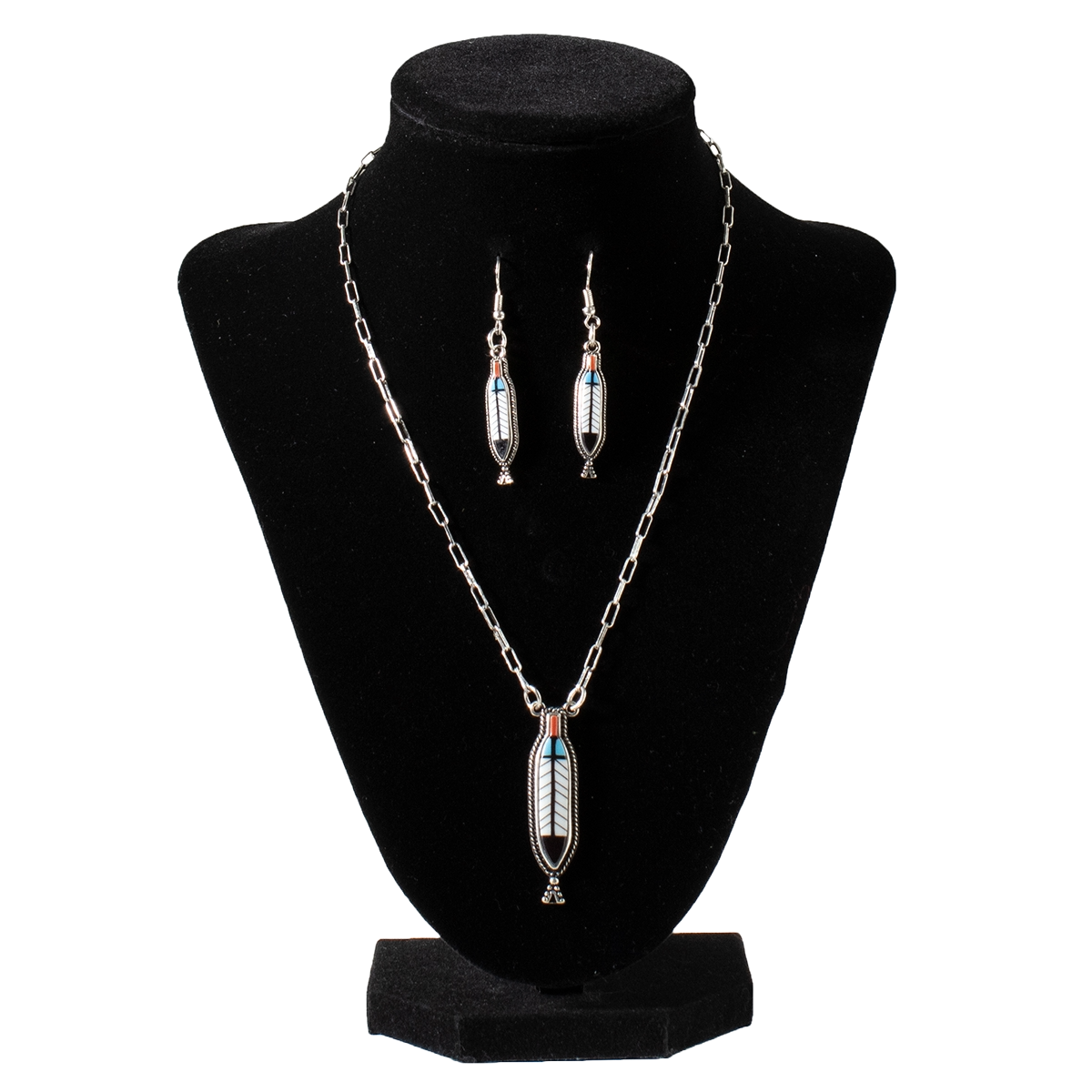 Silver Strike Ladies Painted Feather Jewelry Set D450022397