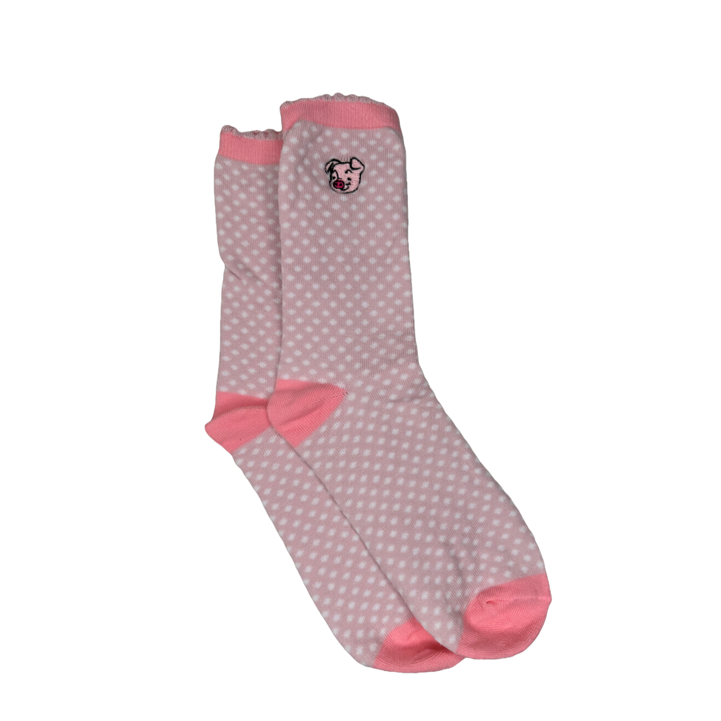 Simply Southern Ladies Pig Poke- A- Dot white & Pink Socks 0124-SOCK-PIG