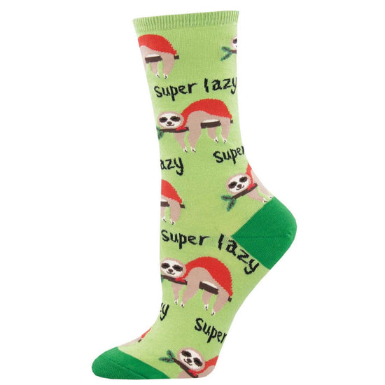 SockSmith Ladies Super Lazy Sloth Green Crew Socks WNC2280-GEE