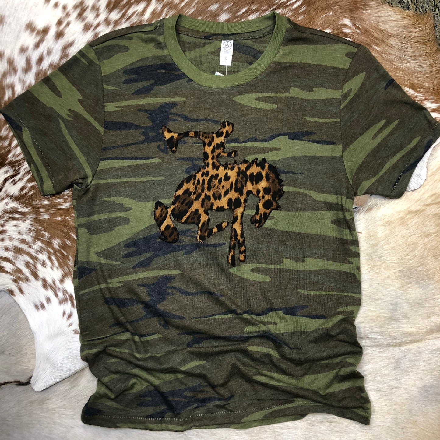 Sweet Texas Treasures Ladies Big Cat Bucking BF Camo Shirt BC7B-CA