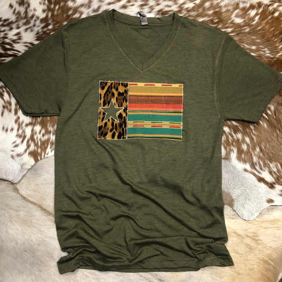 Sweet Texas Treasures Ladies Big Cat & Mojave TX Flag Olive Shirt TX6F-OL
