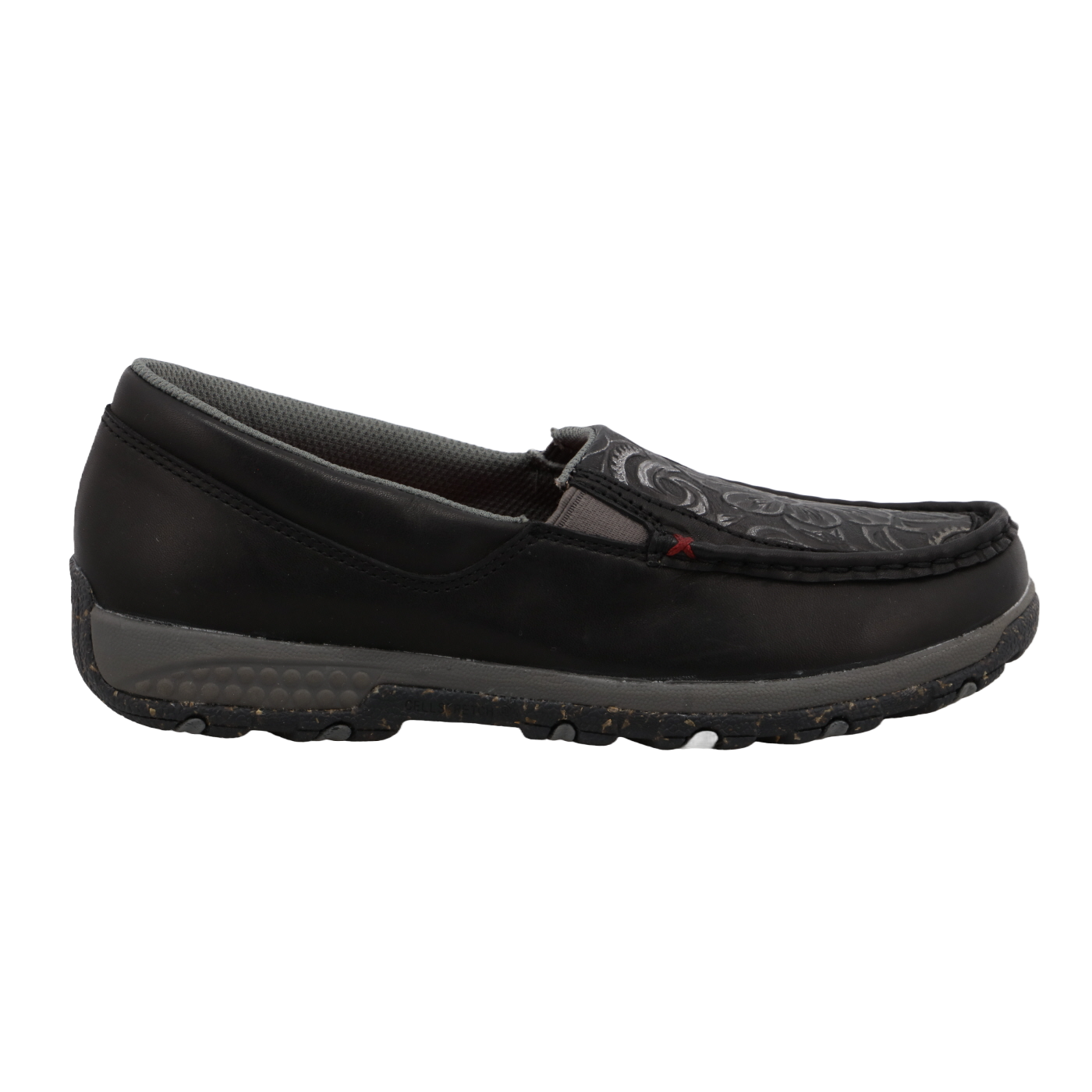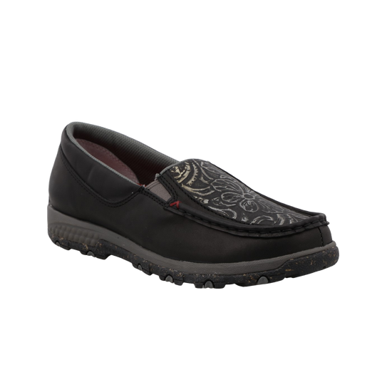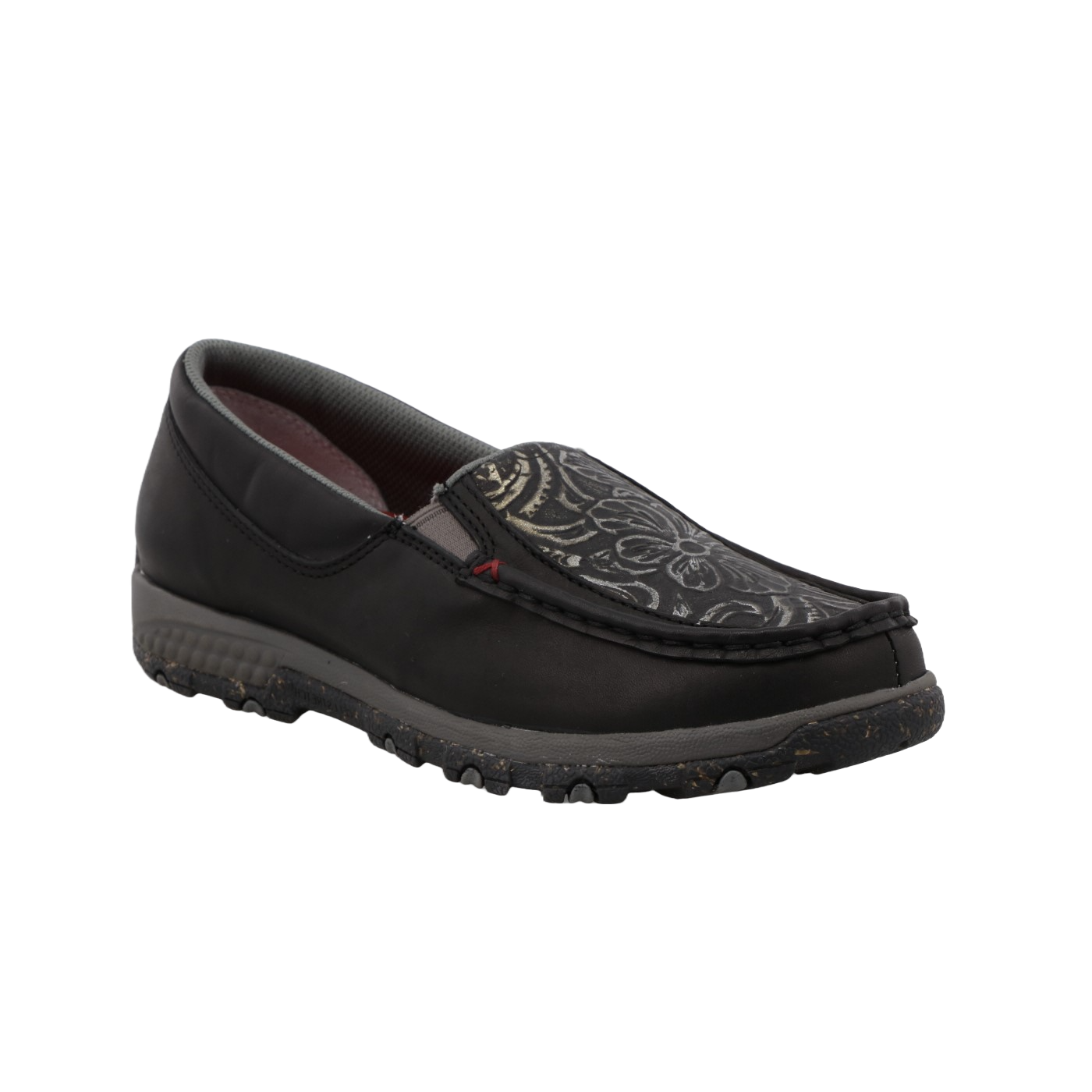 Twisted X Women's Slip-On Driving Moc Black and Tooled Shoe WXC0014