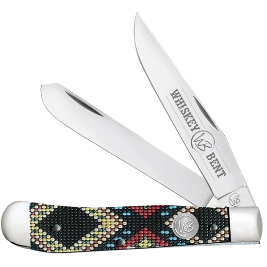 Whiskey Bent Diamond Beaded Black Pocket Knife WB11-11