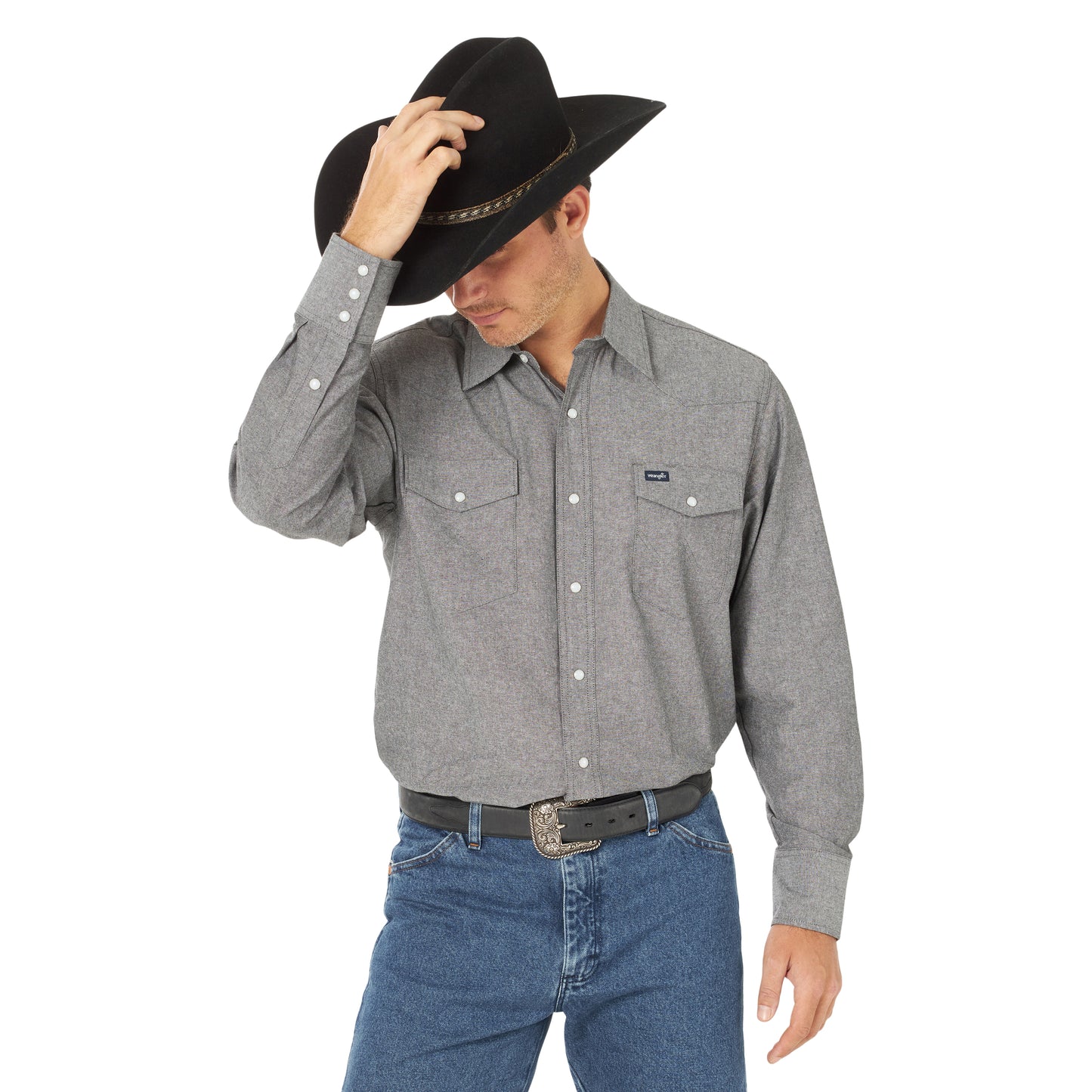 Wrangler Men's Cowboy Cut Chambray Moonlight Button Down Shirt 112316691